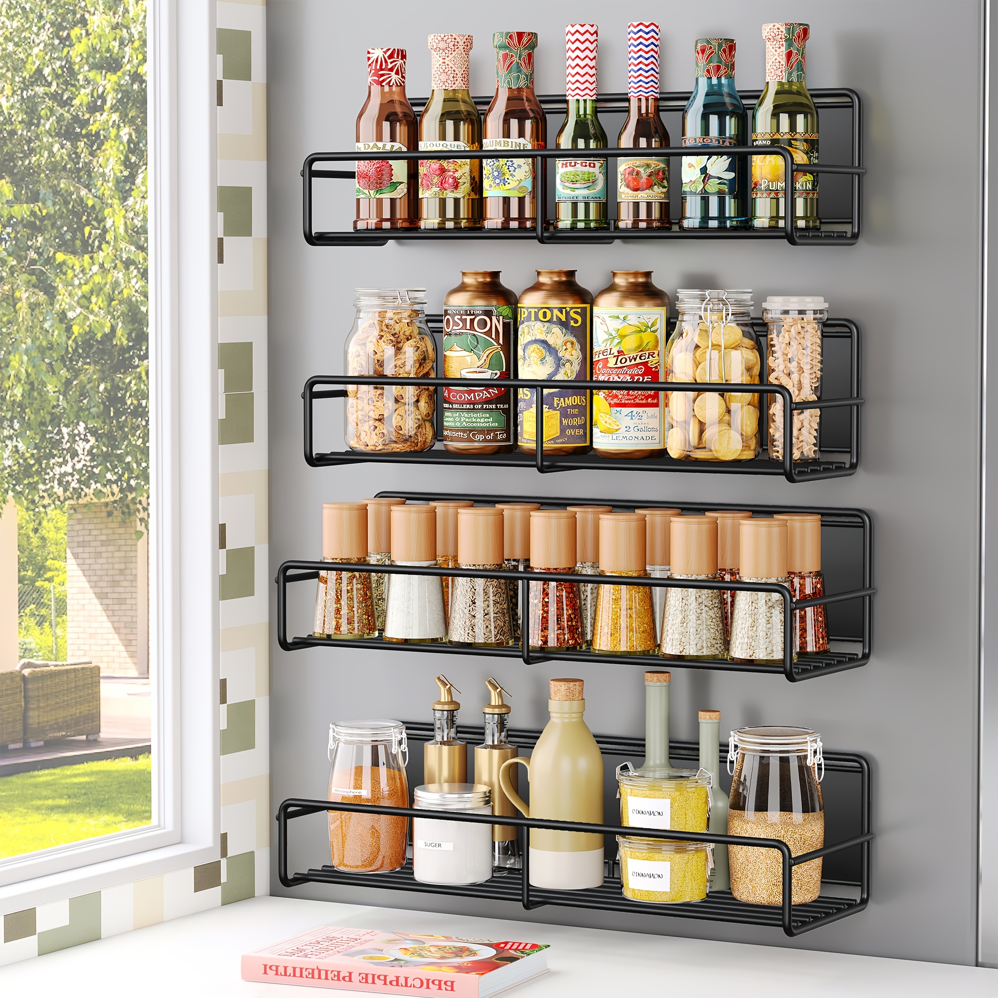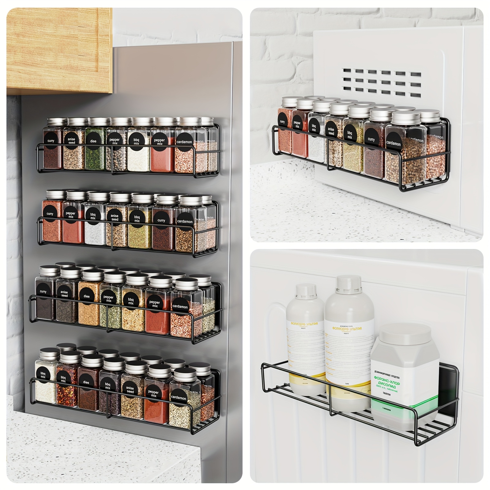 4pcs Magnetic Spice Adjustable Storage Shelf, No-Punch Kitchen Refrigerator Magnetic Shelf, Strong Magnetic Spice Storage Shelf, Washing Machine Storage Shelf, No-Punch Wall Mounted Storage Shelf, Kitchen Storage Accessories, Coffee Bar Accessories